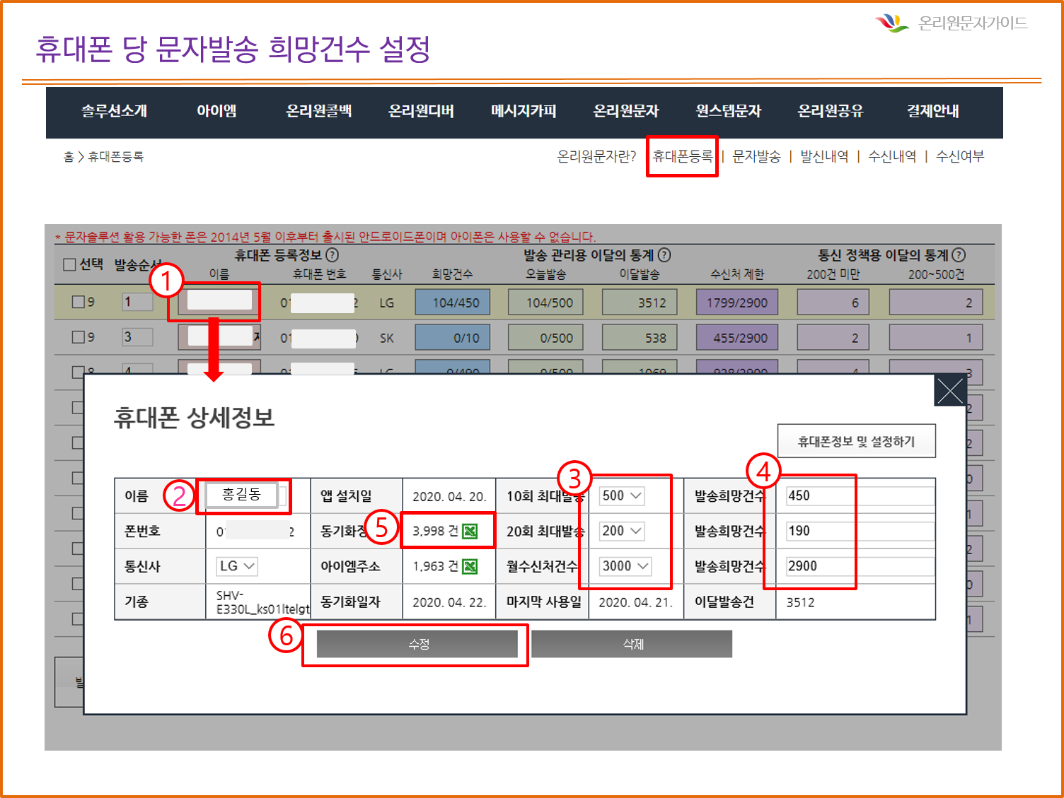 [온리원문자] 발송건수 및 수신처수 직접 설정 2020-04-22